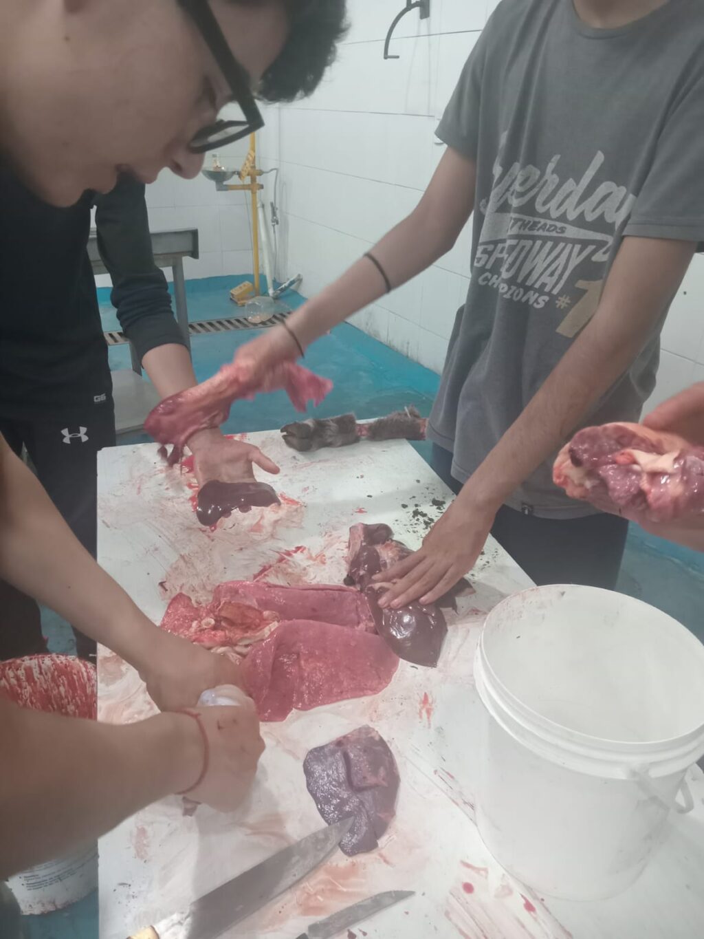 Desde Anatomía y Fisiología Animal, los estudiantes profundizaron en el estudio de los sistemas orgánicos de animales mediante la observación directa de órganos y estructuras internas, a partir de la faena educativa de corderos, pollos y conejos. Estos procedimientos, realizados bajo estrictas normas de bienestar animal y en un entorno educativo controlado, les permitieron identificar de manera práctica los sistemas digestivo, respiratorio, circulatorio y reproductor, logrando una comprensión más profunda y significativa de los contenidos vistos en clase.