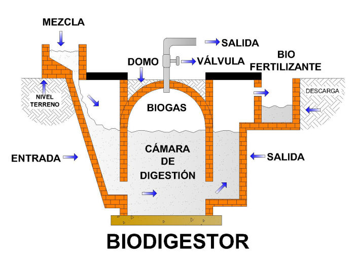 La biodigestora anaeróbica es un proceso biológico complejo donde un consorcio de bacterias y hongos degrada la materia orgánica en ausencia de oxígeno y en condiciones de oscuridad, transformándola en biogás y un efluente líquido que está compuesto principalmente por metano y dióxido de carbono, aunque también contenga pequeñas cantidades de otros gases, como vapor de agua y sulfuro de hidrógeno. En la digestión anaeróbica más del 85% de la energía disponible por oxidación directa se transforma en metano, consumiéndose solo un 15% de la energía en crecimiento bacteriano.