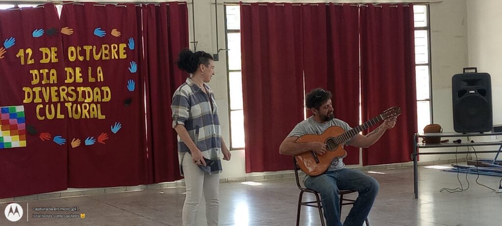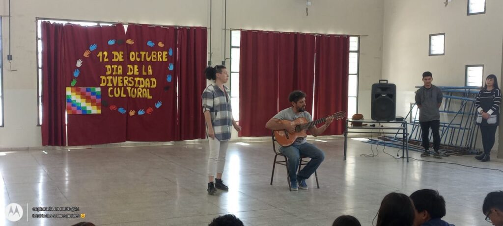Durante el acto, la profesora de historia Natalia Dávila tuvo un papel destacado, compartiendo con los alumnos reflexiones sobre la importancia de la diversidad cultural y su impacto en la construcción de una sociedad más inclusiva y respetuosa. Acompañada por el talentoso músico Jano Molina, interpretaron la canción “Canción con todos” del reconocido autor César Isella, así como la canción “Ganas De Verte”, solicitada por los propios alumnos.