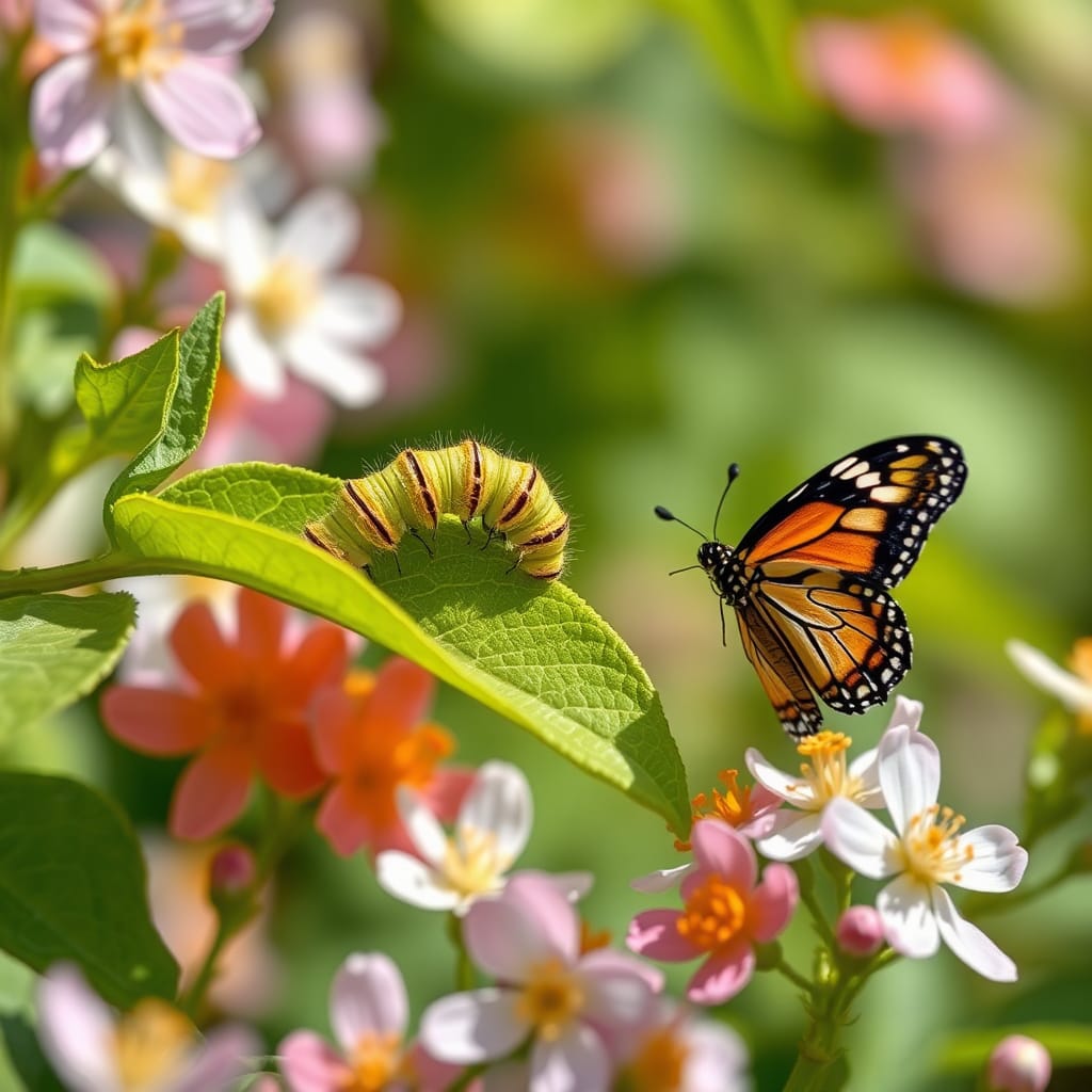 Mientras Clara admiraba las flores, noto una pequeña oruga que se arrastraba lentamente. Recordó lo que su abuela le había enseñado, “cada oruga tiene el potencial de convertirse en una hermosa mariposa”. Decidió cuidar de la oruga mientras exploraba el bosque cada día.
