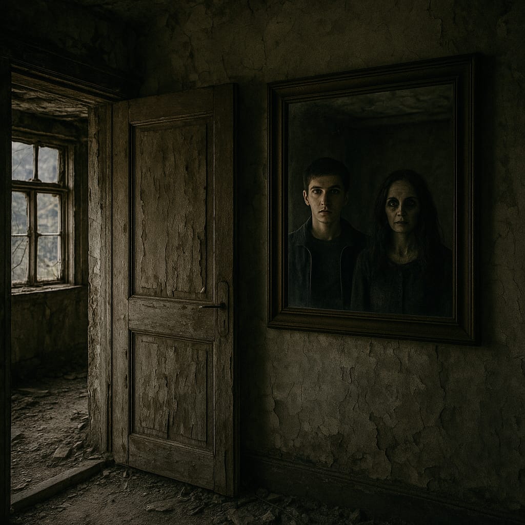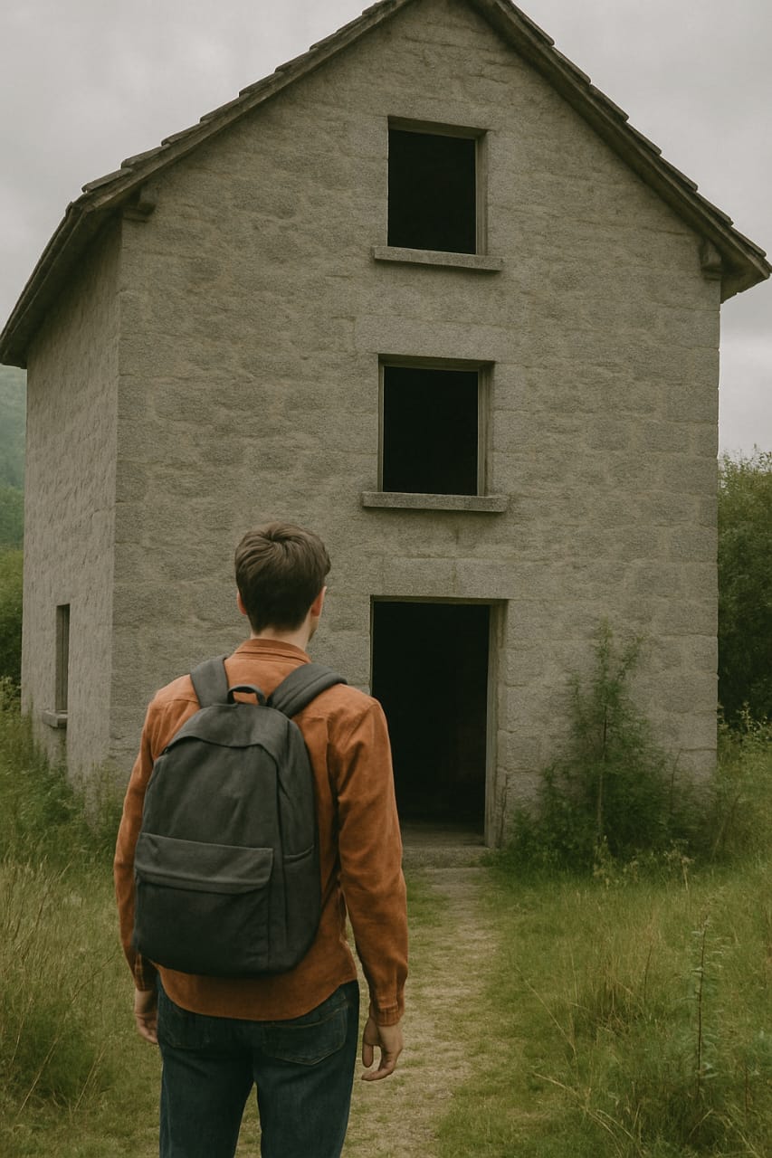 Un joven llamado Julián se aventura a explorar una casa abandonada y embrujada en un pueblo rodeado de montañas. La casa tiene una atmósfera oscura y misteriosa que intriga a Julián. Al entrar, siente un ambiente extraño y oye ruidos inexplicables que lo hacen sentir incómodo.