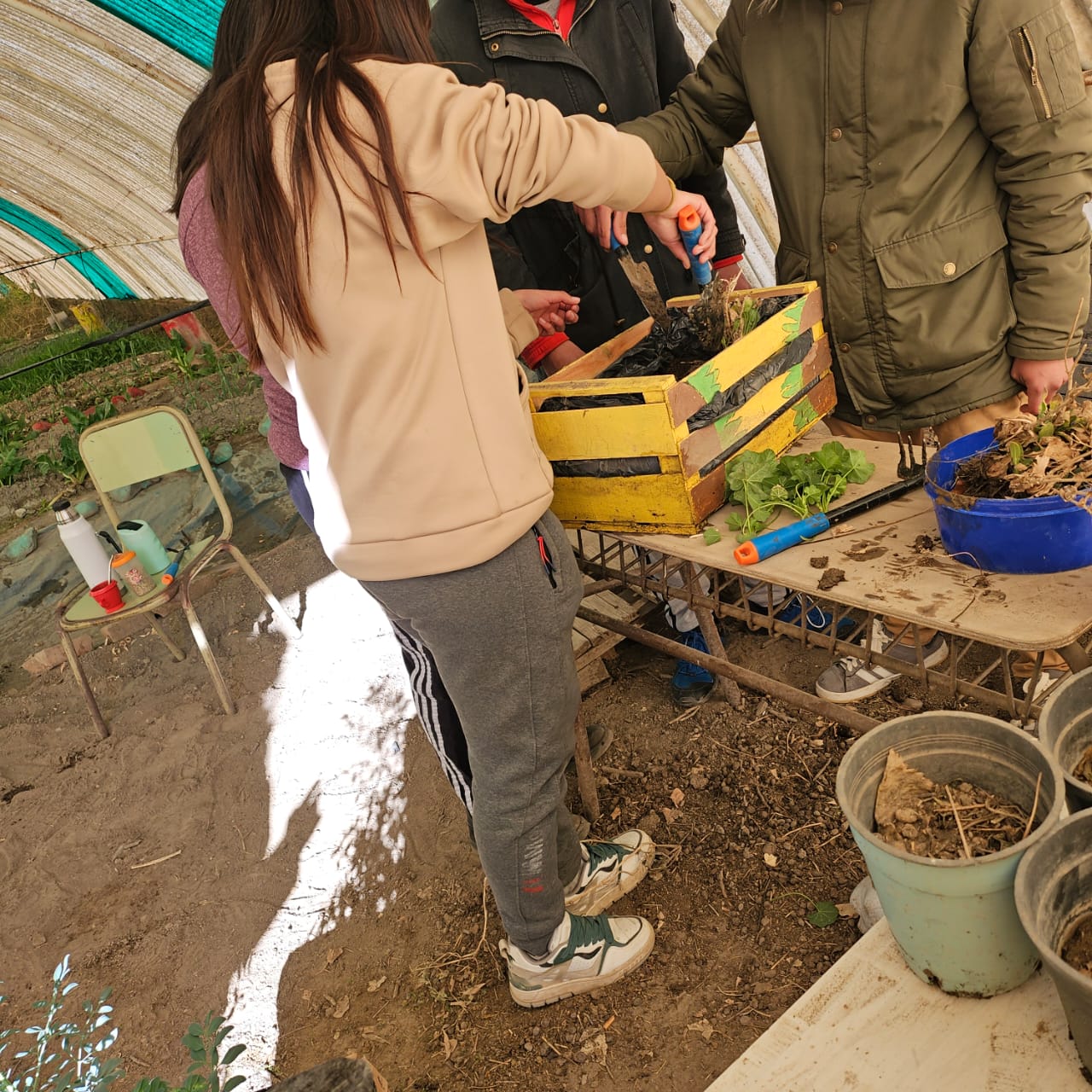 Las profesoras del Área Técnica asesoraron a sus alumnos para la confección maceteros de plantines con distintas aromáticas destinadas a los cursos de los 3ros años, allí deberán cuidarlos desde que sean instalados.