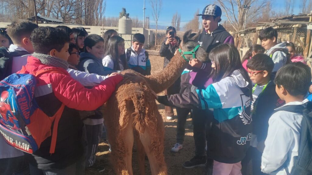 La visita concluyó con un broche de oro interactuando con JUANITO, el llamo de la escuela, y en donde los alumnos y docentes visitantes pudieron experimentar estar cerca de una especie tradicional de la zona.