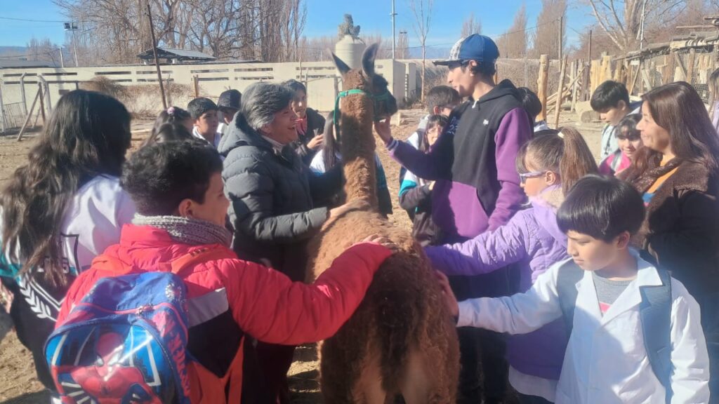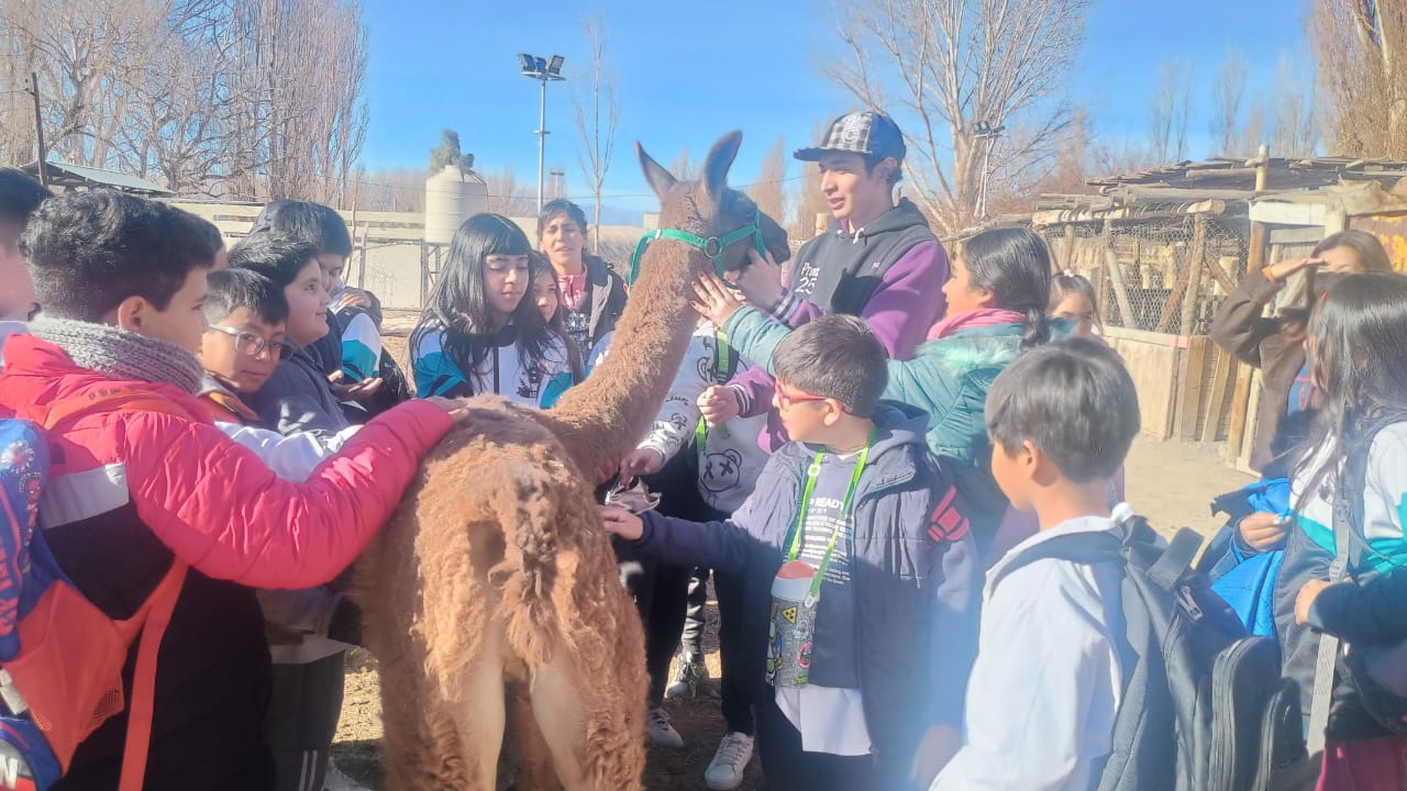 La visita concluyó con un broche de oro interactuando con JUANITO, el llamo de la escuela, y en donde los alumnos y docentes visitantes pudieron experimentar estar cerca de una especie tradicional de la zona.